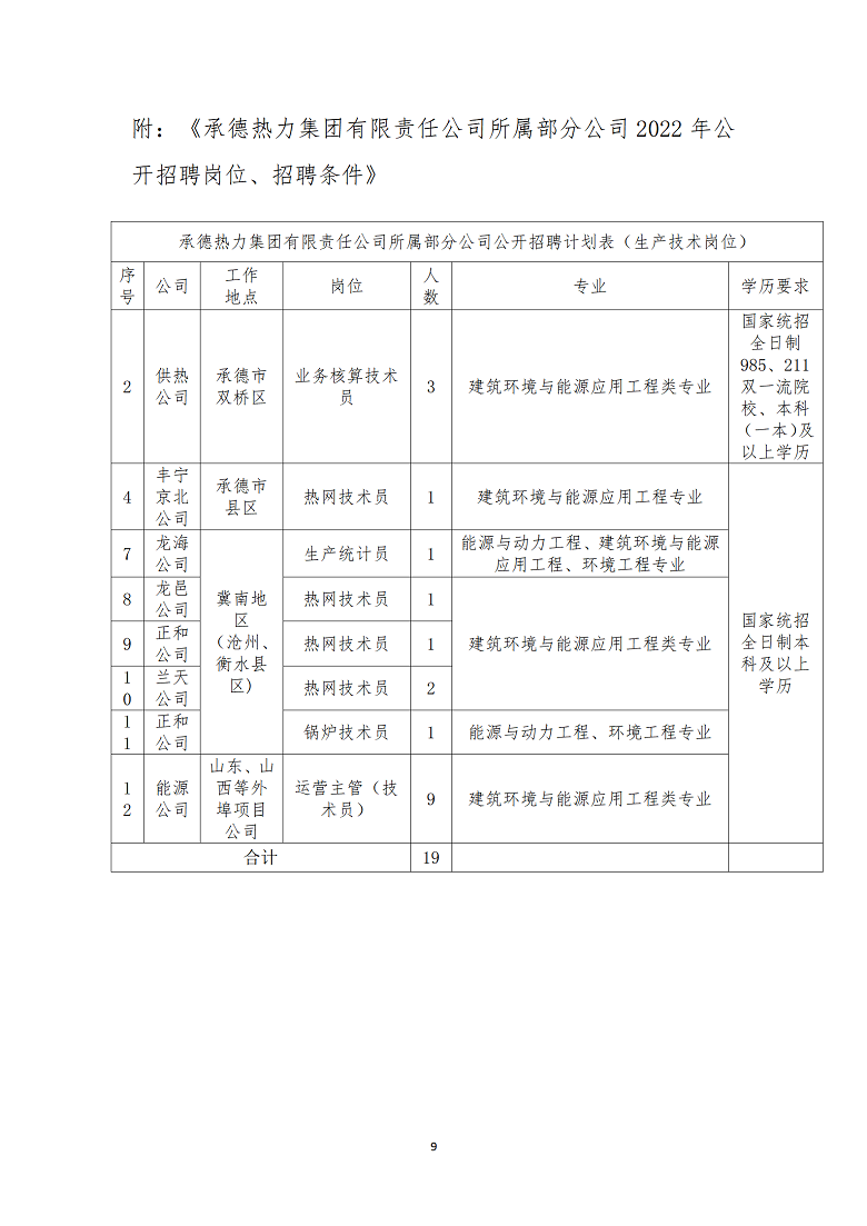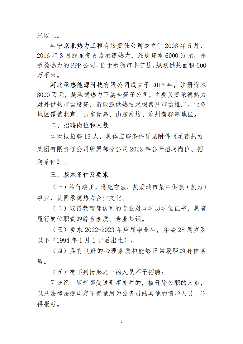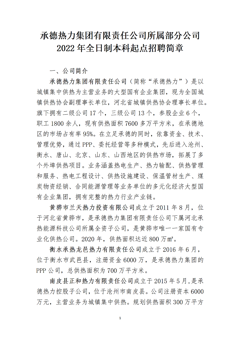 承德熱力集團(tuán)有限責(zé)任公司所屬部分公司2022年全日制本科起點招聘簡章